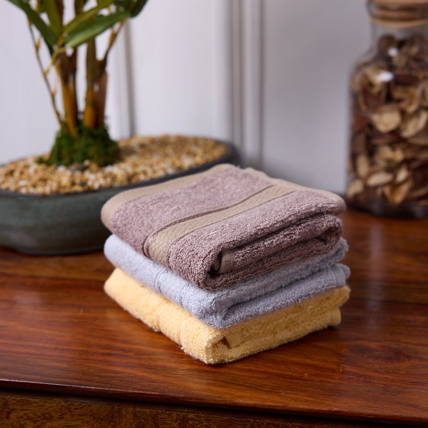 Bamboo Soul Bamboo Face Towel | Ultra Absorbent & Super Soft | 30 x 30 cm - 550 GSM | Pack of 3 – Light Grey, Yellow, Dark Beige